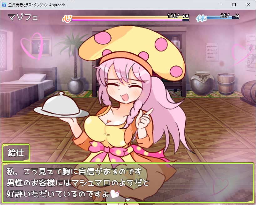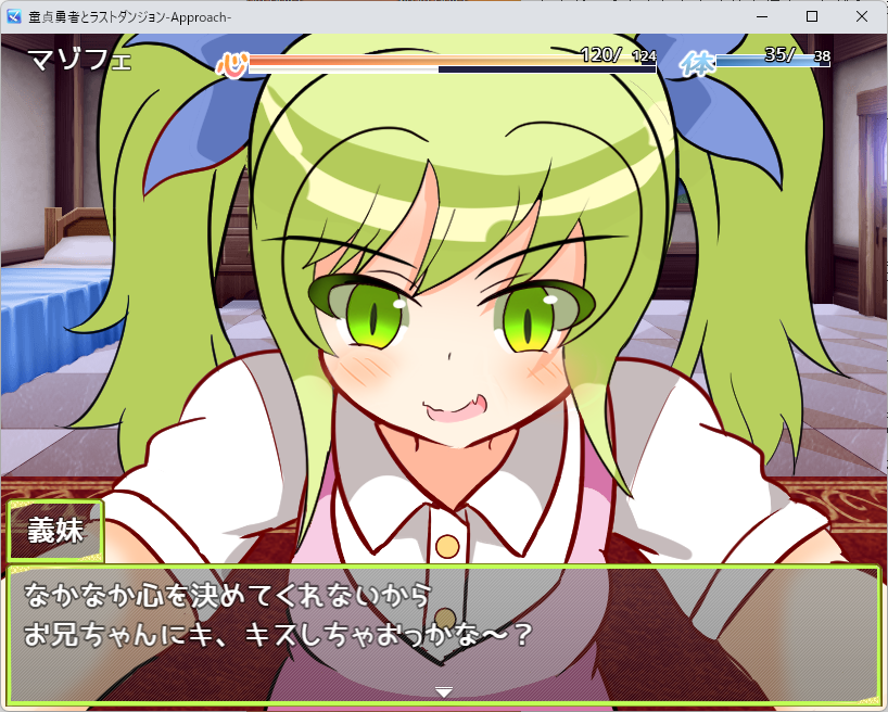 本作のバトルは、物理的な殴り合いではなく「精神的な駆け引き」が中心です。 女の子たちの攻撃はすべてテキストウィンドウで行われ、メッセージを読んでいる間も「色仕掛け」を受けていると判定されるシステムが秀逸!