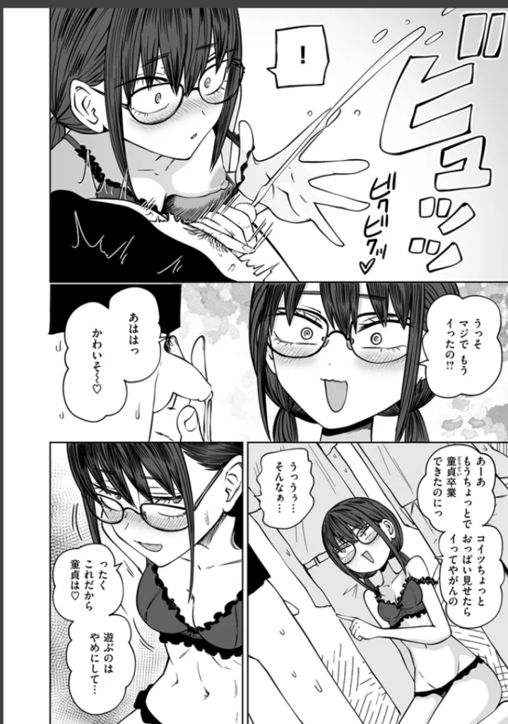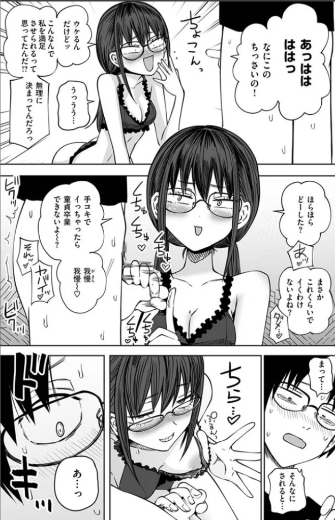 「オタク君たちにはこのくらいで十分でしょ?」と言わんばかりの余裕を感じさせる表情と、熟練のテクニック。彼女の身体そのものは標準的でも、「男を転がす術」を知り尽くした動きが、ページから溢れんばかりのエロスを放っています。